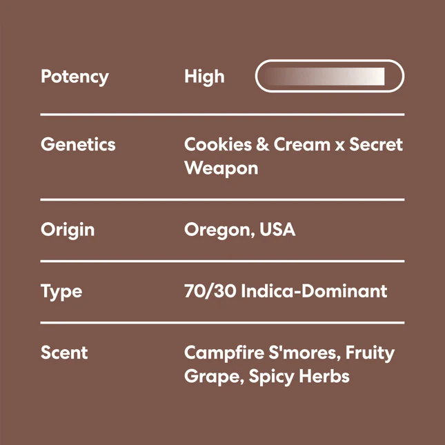 L’expérience sensorielle est sublimée par un profil aromatique unique. Le nez découvre un parfum sucré et gourmand, évoquant à la perfection le goût des S’mores (guimauve grillée et chocolat). En bouche, la fumée est étonnamment douce et savoureuse, rendant chaque session agréable et sans irritation.